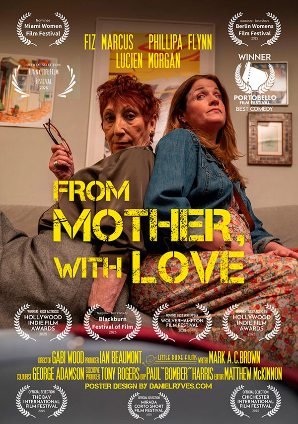As our updated poster illustrates, Little Dude Films’ short film, From Mother, With Love continues to wow them in the aisles, both in the UK and around the world. The film is directed by first time director, Gabi Wood; written by Mark A. C. Brown; and produced by Ian Beaumont of Little Dude Films.